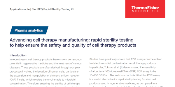 Read a new application study showing the benefits of rapid sterility testing when managing the fast-paced process and limited shelf life of a cell therapy workflow. Ensure the quality and safety of your final product while minimizing the risk of product loss and delays. Learn how to improve workflow efficiency.