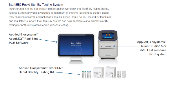 Rapid sterility testing is essential in cell therapy production to ensure the quality and safety of the final product. It helps detect and prevent contamination throughout the workflow, reducing the risk of product loss and delays. The Applied Biosystems™ SteriSEQ™ Rapid Sterility Testing System is a real-time PCR solution designed specifically for rapid sterility testing of cell therapy products. It provides actionable qPCR results in less than 5 hours, detects both bacterial and fungal contamination, and offers an efficient workflow solution with security and audit capabilities. This system is supported by a global network of specialists for assistance with method development, implementation, and validation.