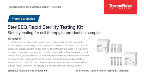 Read about the SteriSEQ Rapid Sterility Testing Kit in detail. With an explanation of the Rapid Sterility Testing Kit's applications in cell therapy production, its ability to detect numerous bacterial and fungal species, its efficiency, and its integration with real-time PCR systems and analytical software.
