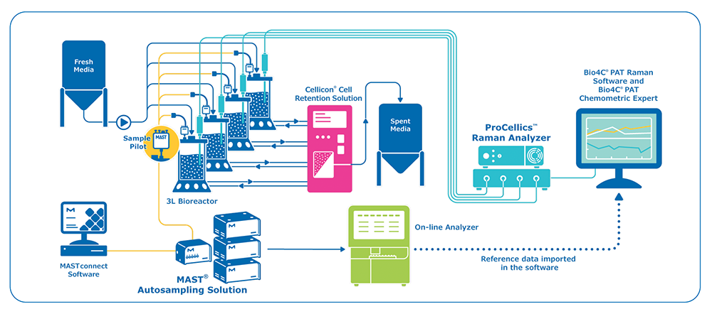 The application of PAT requires analytical monitoring, data analysis, process control, and continuous optimization to be successful. Process monitoring leverages technologies such as sensors and sampling, and analytical methods such as spectroscopy. Automated aseptic sampling integrates process streams with analytical systems to accelerate quality testing and data access. Raman spectroscopy provides in-line, non-invasive molecular insight into critical process parameters (CPPs) such as glucose and lactate, and critical quality attributes (CQAs) such as protein titer and glycosylation. Together, these technologies support monitoring, modeling, and automation—allowing manufacturers to better understand, control, and optimize processes while improving product consistency, efficiency, and overall process robustness under GMP conditions.